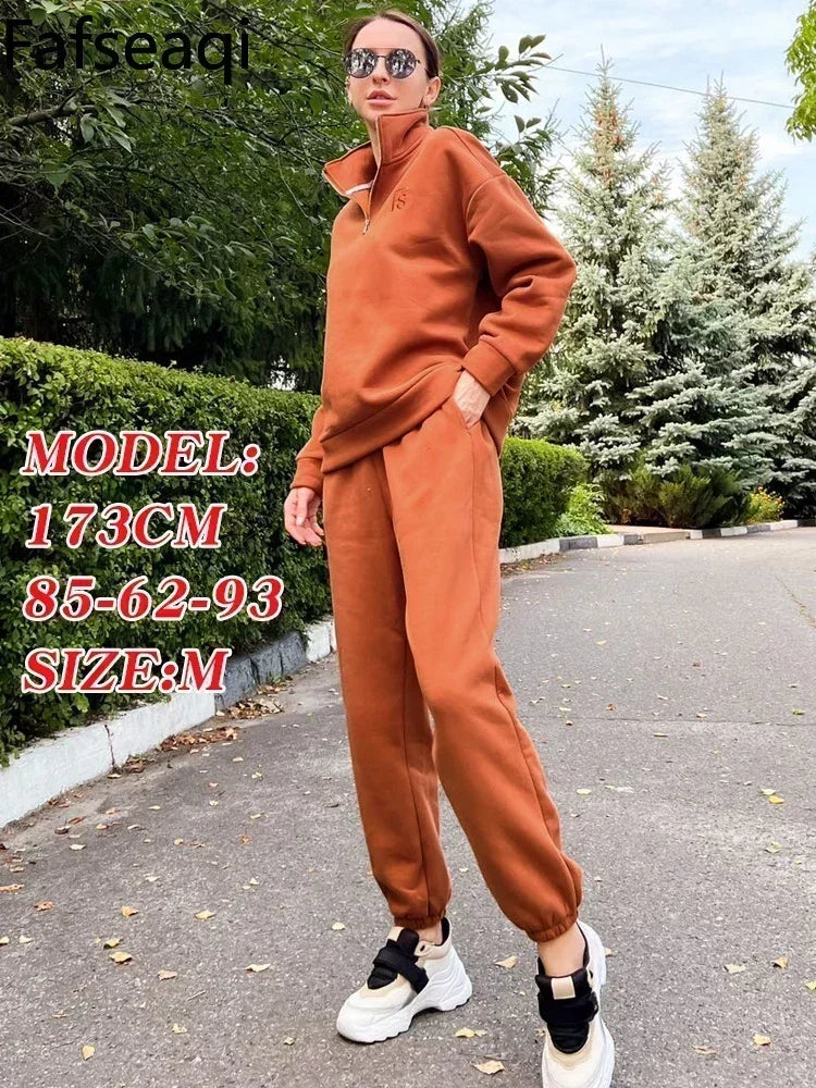Step into the chill of 2023 with the "Cozy Couture Winter Ensemble" by Fafseaqi. This meticulously tailored two-piece set, comprising a velvet zipper hoodie and harem trouser suits, combines the luxury of cotton fleece with a casual, yet sophisticated design. Perfect for women seeking both style and warmth, this ensemble promises to be your go-to outfit for all your winter adventures.